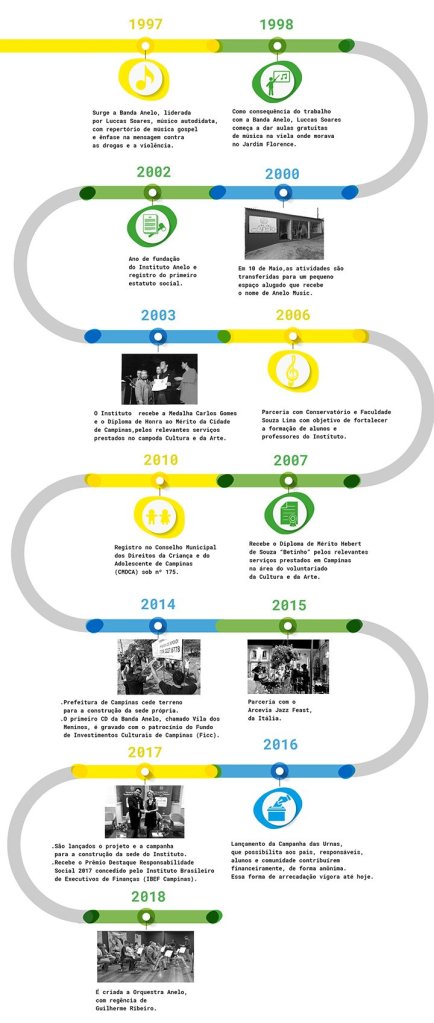 Aonde Anelo foi criado em 1996 por Luccas Soares, que ensina música na comunidade onde nasceu para as crianças. Luccas, após se apaixonar por música resolveu que usaria o seu talento em prol ao seu povo, e após montar.