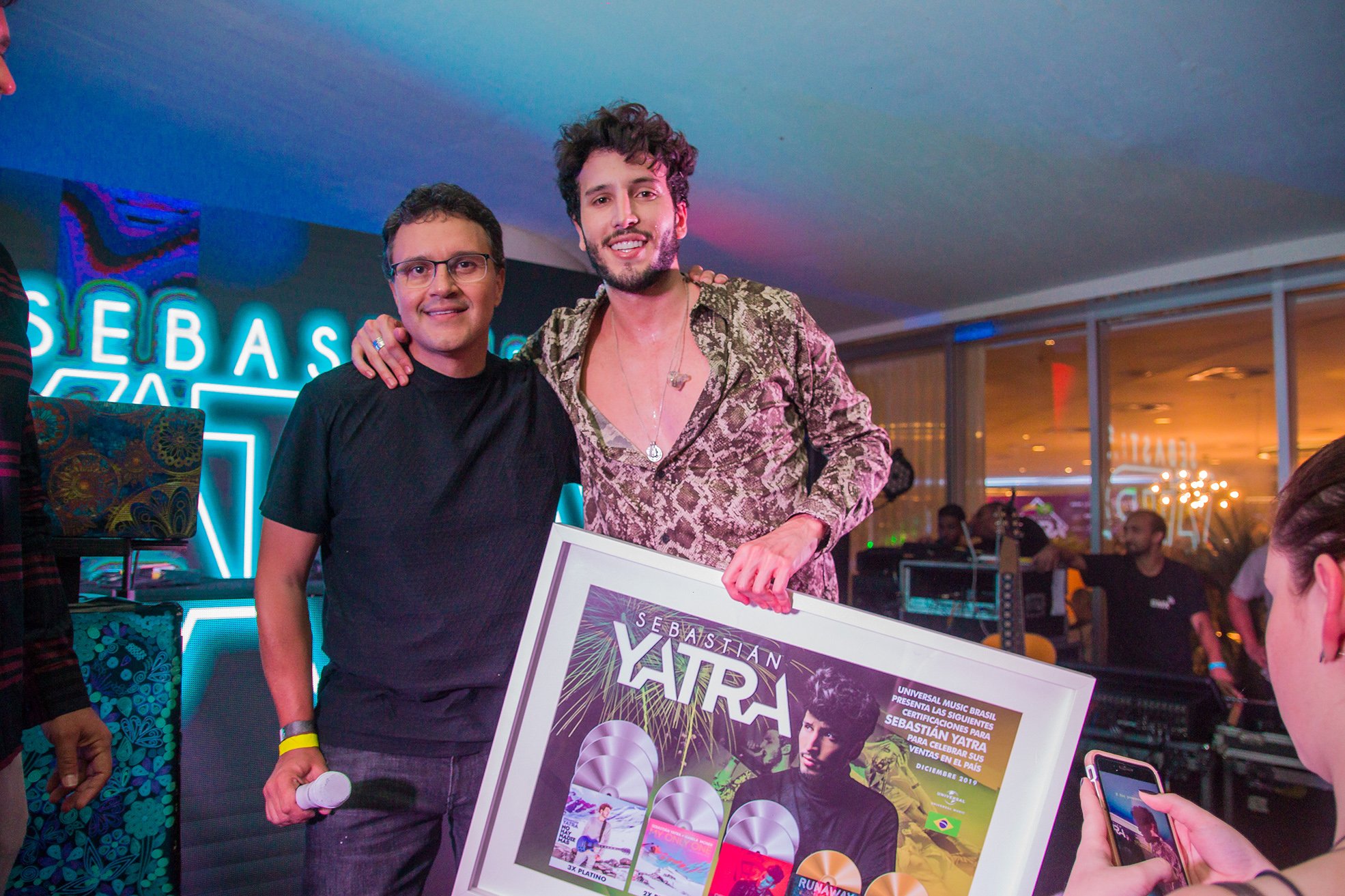 “Queria agradecer ao Sebastián Yatra, um artista que está no topo das paradas em diversos países do mundo e gostaria de celebrar tudo o que foi conquistado por ele e por todos os nossos artistas no ano de 2019”, disse Paulo Lima. “Temos muito orgulho de todos vocês e do ambiente familiar que criamos aqui, sem divisões de cargos ou artistas, somos uma grande família. A Universal Music Family”, disse Paulo.