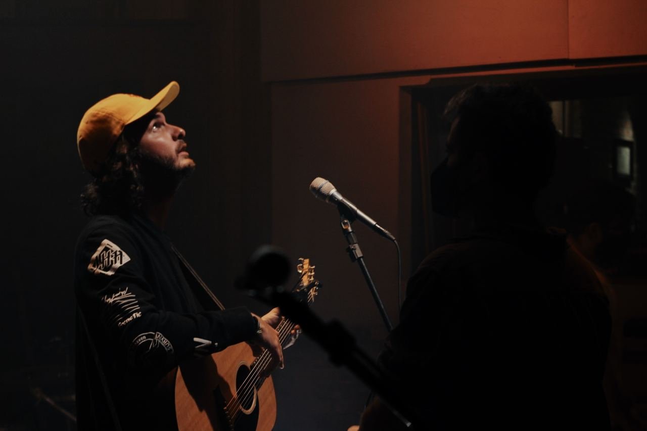 Simão: Gravar sempre é massa, um experiência que o cara sempre se põe a pensar no que vai fazer de diferente do que já fez e a galera vai gostar. Isso é muito legal, de tentar descobrir o que fazer. Dá combustível pro músico. Lancei a primeira música em Maio e as outras vieram numa sequência durante a pandemia. Então a gente não tinha muita resposta do público no show, algo assim; a gente tinha e tem só feedback da internet. Como a gente tava no meio da pandemia e lançando só trabalhos novos, meio que sente uma necessidade de dar mais um gás nessas músicas que lancei e veio a ideia. ‘Será que faço um acústico? Com as mesmas músicas vai ficar igual?’. E aí pensei, ‘vamos fazer um arranjo diferente no formato tipo acústico que visualmente vai parecer acústico’. Mas como tem o contrabaixo e guitarra não é um acústico. Assim surgiu a ideia. Conheci dois produtores muito legais de Curitiba e a gente foi lá e gravou. A gente ensaiou num dia pra gravar no outro e saiu com um resultado fantástico. Toda vez que vejo o clipe eu falo ‘pô velho, é isso que eu queria’. Ficou muito legal.