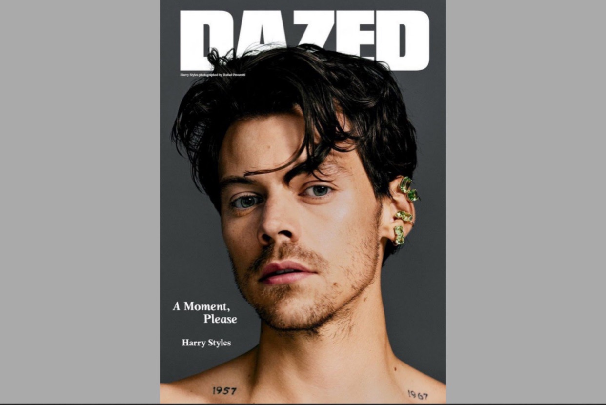 Falando sobre diversos temas, inclusive sua nova linha de cosméticos Harry Styles, é capa da revista britânica Dazed.