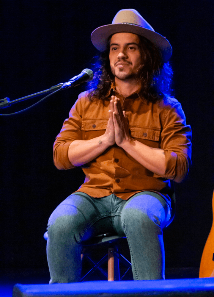 Com a voz embargada e acolhida por todo teatro Paiol Cultura, Thiago Mart anuncia o adiamento do show pelo motivo mais nobre possível: a chegada do Miguel. Gabriela Luz teve a bolsa rompida minutos antes de subir ao palco para o que seria o último show antes da breve pausa dos papais.